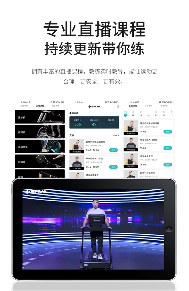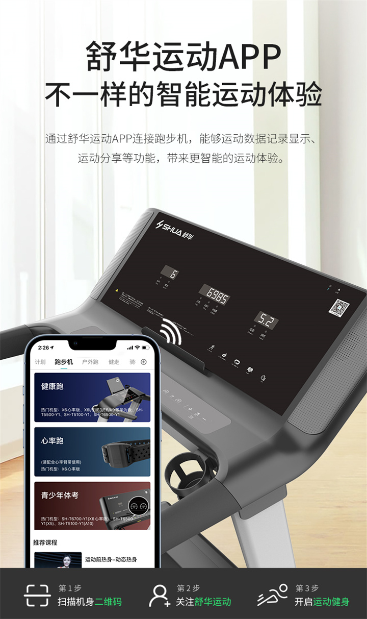 舒華X5 Pro豪華智能跑步機(jī)采用全新舒華跑步機(jī)系統(tǒng),搭載21.5寸大屏,內(nèi)置九種運(yùn)動(dòng)程序,包括場景跑、在線約跑和一鍵體育考試等內(nèi)容,亦有教練在線科學(xué)指導(dǎo)和比賽互動(dòng),可在線升級,歷經(jīng)耐久性測試,讓您使用更安全,雙跑臺設(shè)計(jì),全減震系統(tǒng),核心動(dòng)力采用F級耐高溫馬達(dá),5.0HP峰值馬力,提供源源動(dòng)力,讓您享受每一次暢跑體驗(yàn)。