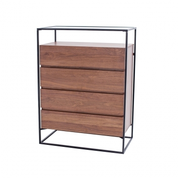 CB-273-胡桃木主體+黑亞光金工件+透明鋼化玻璃