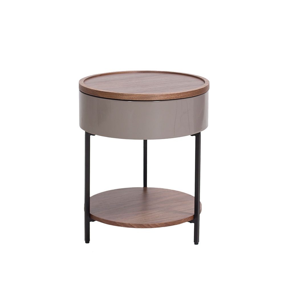 CT-385-胡桃木托盤、層板+石色亮光柜體+黑亞光金工件