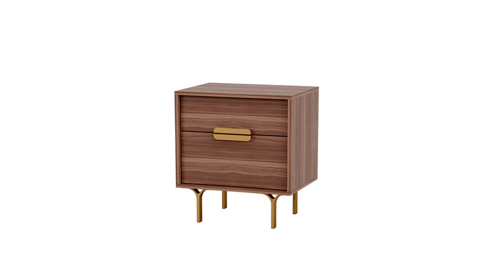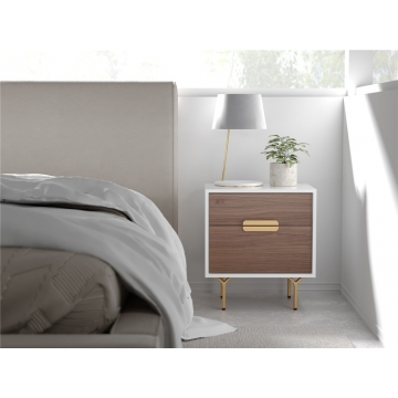 白亮光柜體+胡桃木抽面+黃銅色拉手、腳