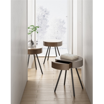 石色亮光面板 圍板 底板+胡桃木實木拼抽面 +胡桃木實木拼三聚氰胺抽盒+黑啞光金工件