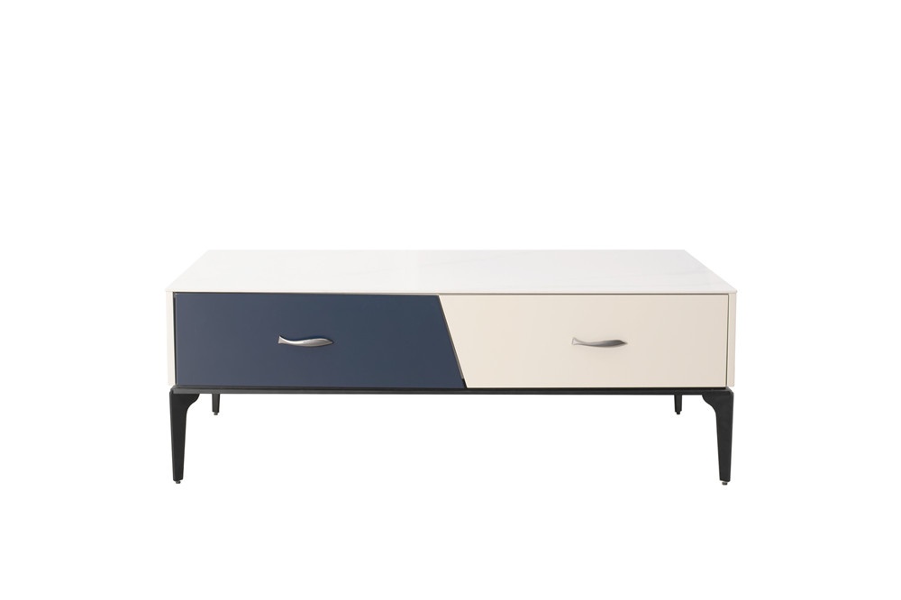 卡塔金巖板+米灰啞光主體+靛藍(lán)啞光抽面+灰色拉手+黑啞光金工腳
