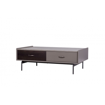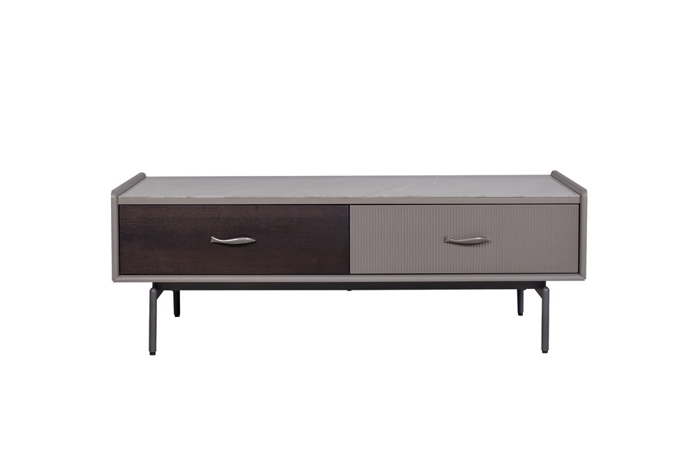 普佩石巖板面板+石色啞光主體+煙熏木皮抽面+金屬深灰色金工件